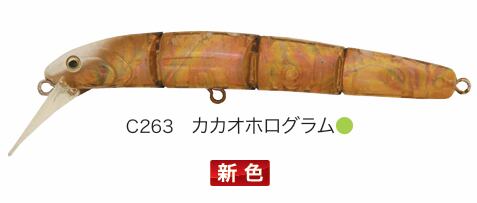単一ボディーではだせない高次元なナチュラルアクションを生み出す為にバランス設定を極限まで追求した新スペック4連ジョイントボディーが今までにないナチュラルなライブウォブリングを生み出す!!高速リトリーブでは今までウォブリングプラグでは限界だった高速スピード領域までサーチを可能にし、タイトなウォブリングアクションでトラウトを誘う。低速リトリーブ時に最大の欠点であった速度に付随して弱くなってしまうアクションの低下を見事に克服したスローワイドなウォブリングでバイトに持ち込む。ウォブリング・ローリングに続く第3のアクションライブウォブリングがエリアトラウトの新たなる革命をもたらす!