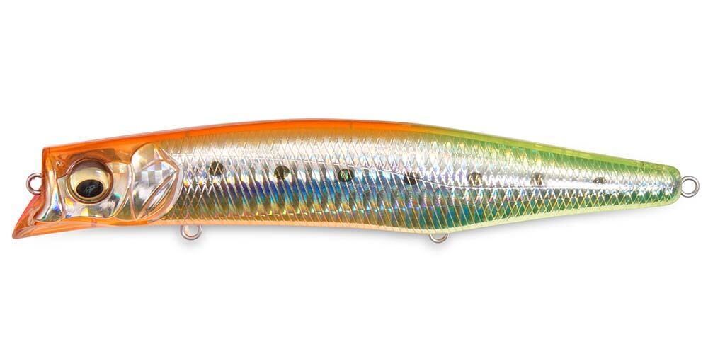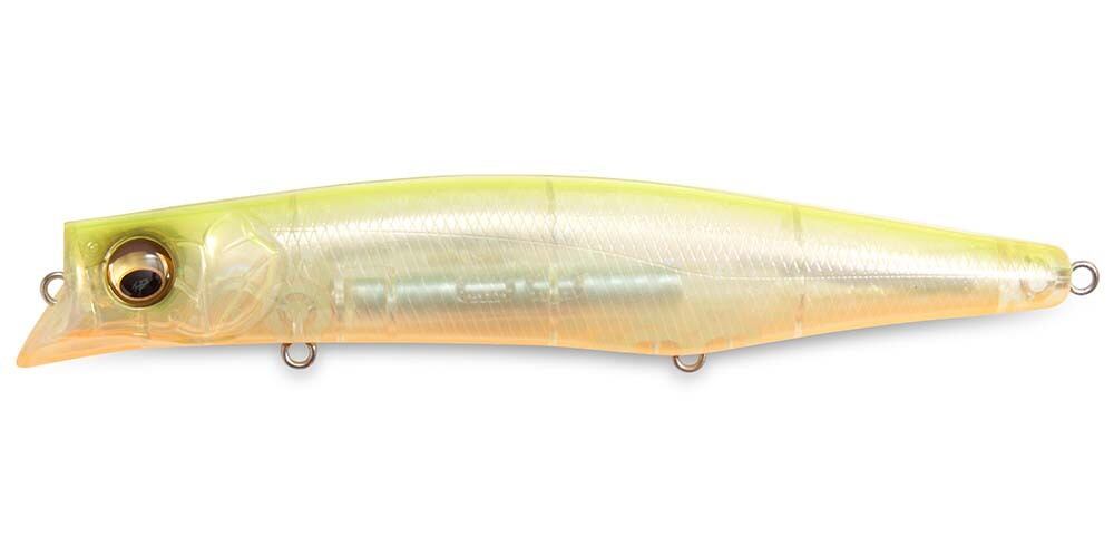 シャロー域や表層域において、ボラや落ちアユ、コノシロ等の大型ベイトが捕食される状況でボリューム感のあるハイアピールボディが絶大な効果を発揮。独自形態のリップスポイラーは、捕食レンジにシビアなモンスターを果敢に反応させるべく、このサイズで最もアジャスト率の高い最大0.8mの絶妙なフィーディングレンジを捉え、オリジナルのカゲロウよりも一段下層の攻略を可能としています。