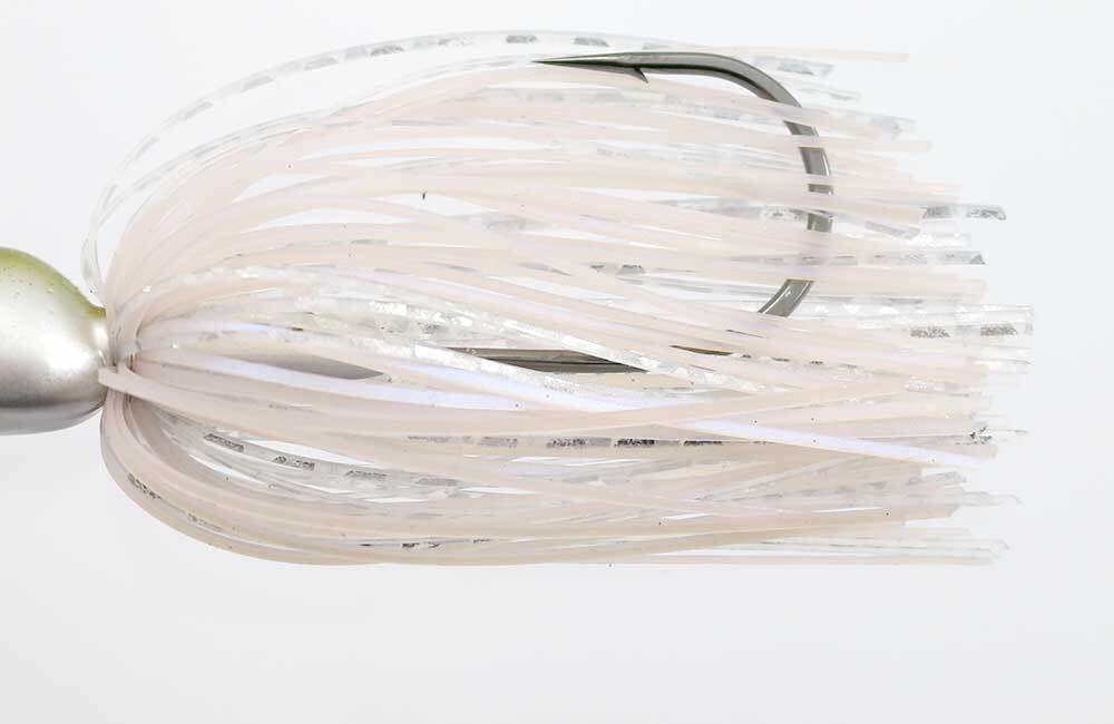チャターベイトの強みは、強波動、強振動による "魚を呼ぶパワー"。AKチャターは "魚を呼ぶパワー" をより高めるべく、オリジナル極薄ロングブレードを搭載。効率よく水を掴むことで、ファストからスローリトリーブまで様々な速度域で釣れる振動をキープします。さらに、ブレードのポテンシャルを最大限に引き出すため、ヘッドとアイのバランスを最適化。ボディ全体をハイピッチに揺らすタイト千鳥アクションが魚を呼び、バイトに持ち込みます。安定感の高いヘッドはボトムでの転がりを減らし、着底時の根掛かりを回避。ウェイトに対して浮き上がりが良いため、ワンランク軽いチャターベイトと同じレンジをトレース可能です。ブレード保持機構には、ビス打ち式(PAT.P)を採用。従来のワイヤー曲げ込み式と比較し、アイ形状の精度向上が可能となったことで、AKチャター本来のポテンシャルを引き出すことに成功しました。