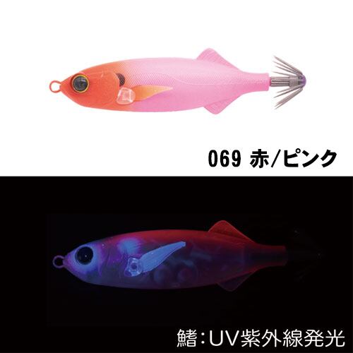 見た目はまさに鯵!リアルな鰺を追求したフォルムでイカを誘惑します。ロッドアクション後のポーズ姿勢はイカが抱きやすいとされる水平姿勢を保ち、アタリに備えます。ボディー表面は布巻ではなく、ABS樹脂ボディーとなっております。アジをイミテートしたリアルな仕上がりとなっております。ボディー側面についたヒレは軟質系素材(エラストマー)となっておりカラーをグロー・ブルーグロー・UVと設定しております。視覚的にもアピール!貫通性に優れたフッ素コーティング仕様カンナを採用。ボディーに触れ合わせたイカを逃さない!かかり抜群のフッ素コーティング仕様!