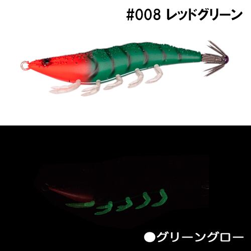ボディー下側に伸びた脚はボディーとは異なる軟質系素材を採用し、フォール時アクション時に脚が細かく振動しイカにアピールします。