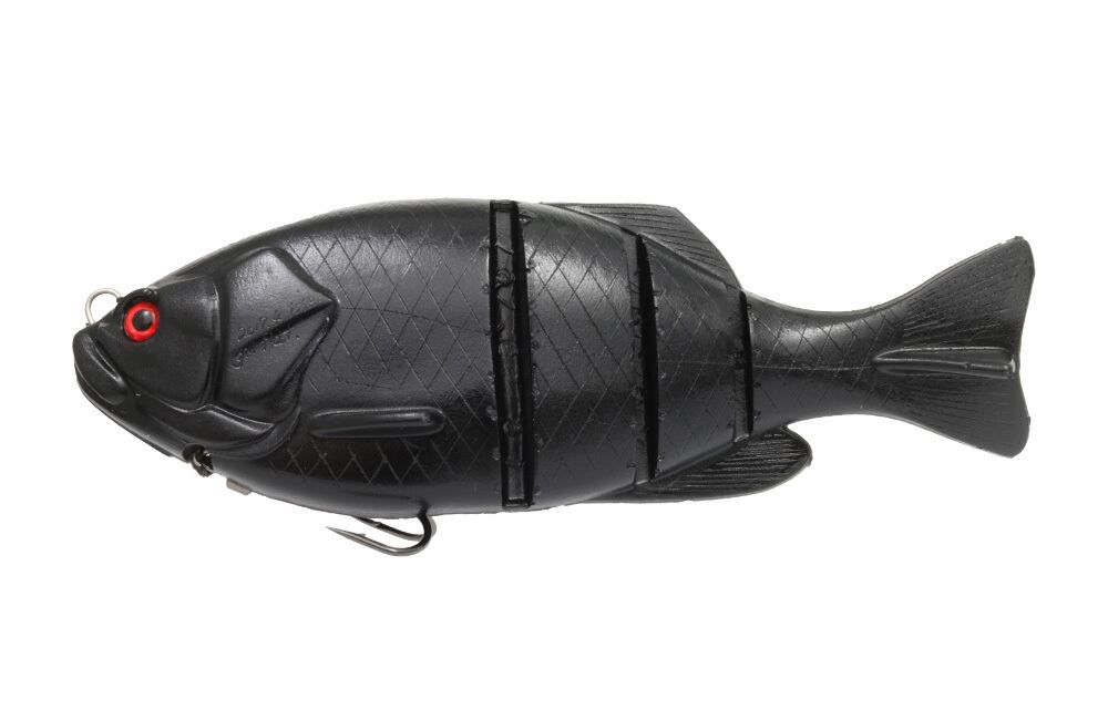 集魚効果のある多関節ビッグボディによるS字アクションや、余韻を残す実物の魚の様なアクションが特徴です。背部の空洞により水に浮く設計で、その穴を細工することにより浮力調整が可能。よりリアルな動きを表現することができます。そのアクションは、使用しているアングラーが本物と見間違えるほどです。専用ロッドは不要。Hクラスのロッドで扱えるマックスサイズにしました。